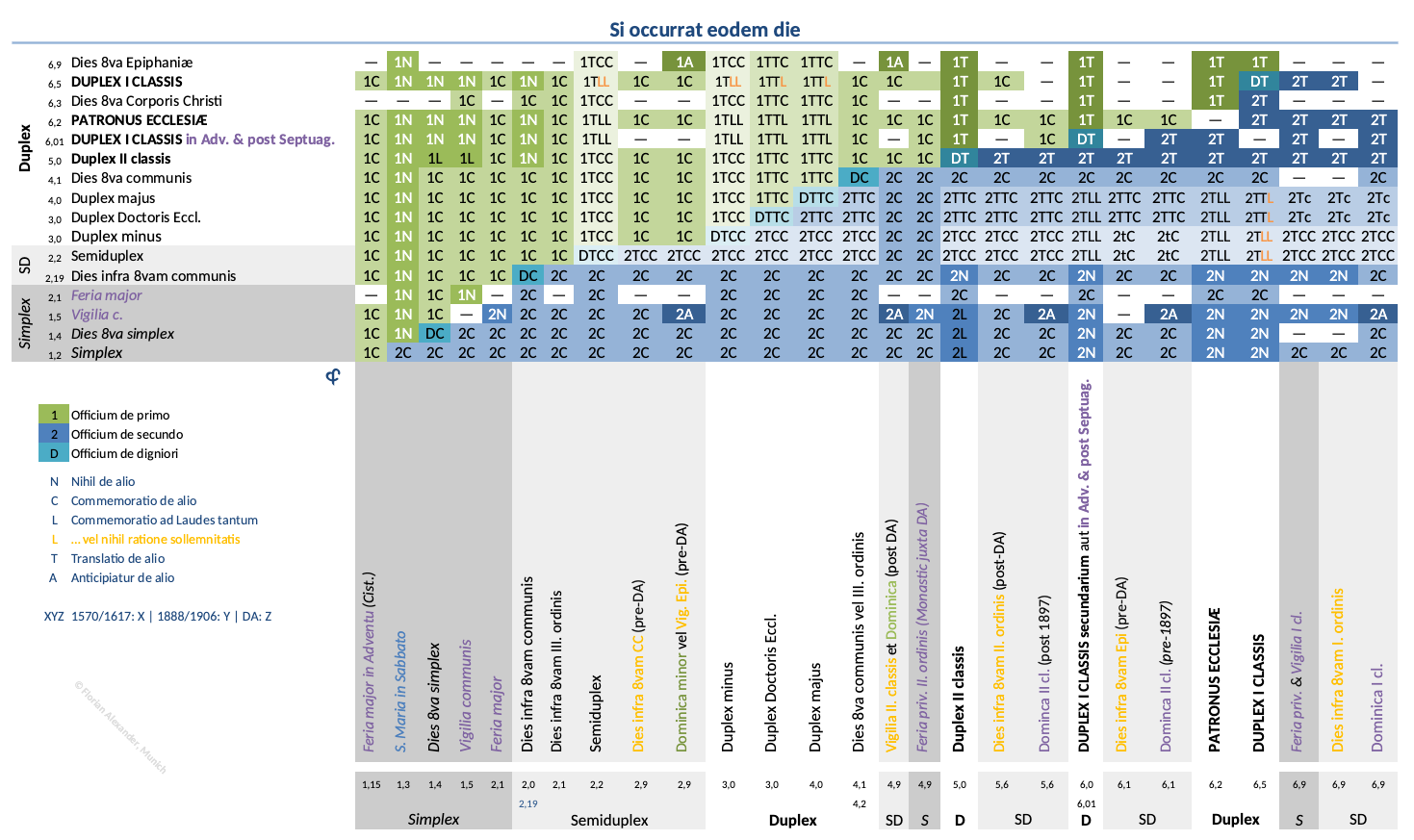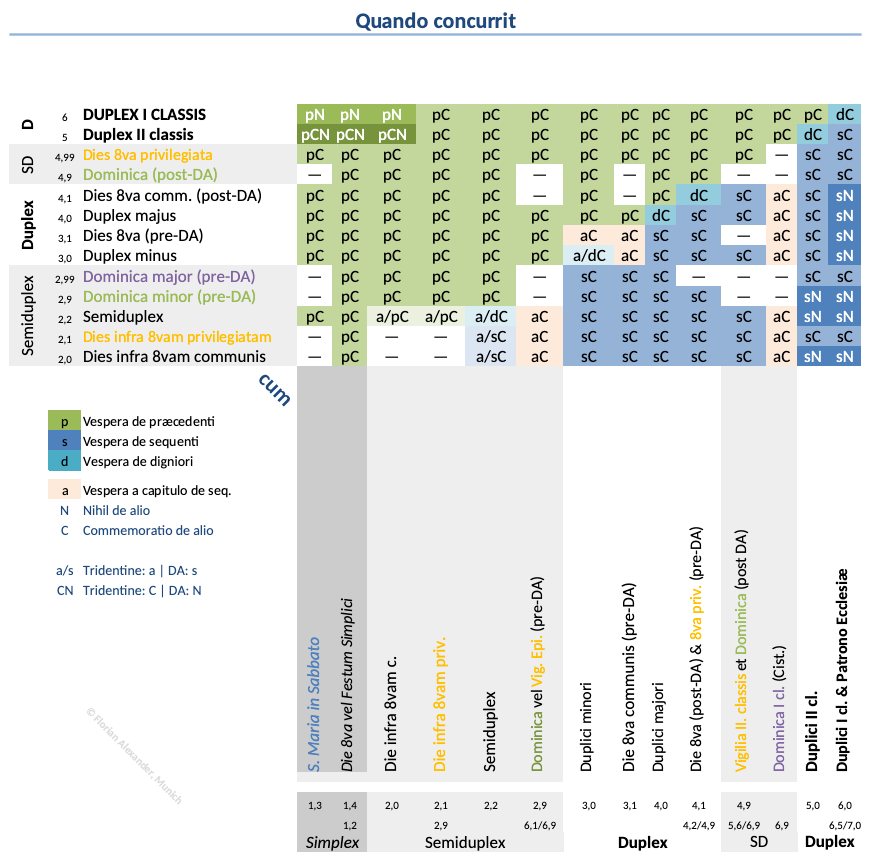 | I. classis | Duplex I. cl. (max. sollem.) | | | I. ordinis | | | 7.0 | Excludes all commemorations |